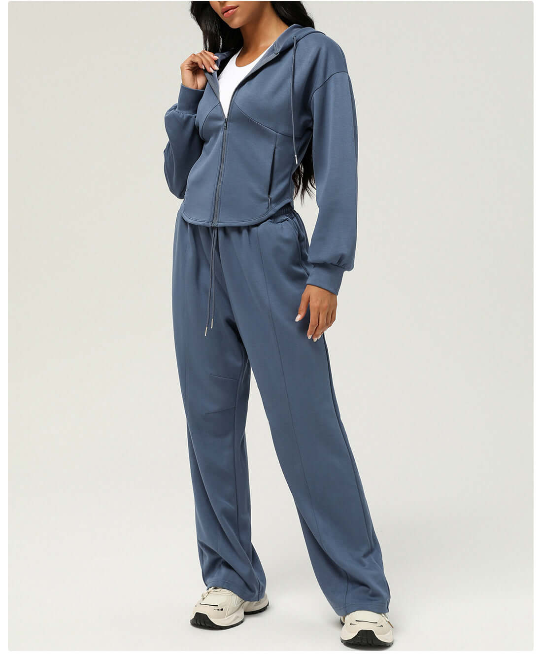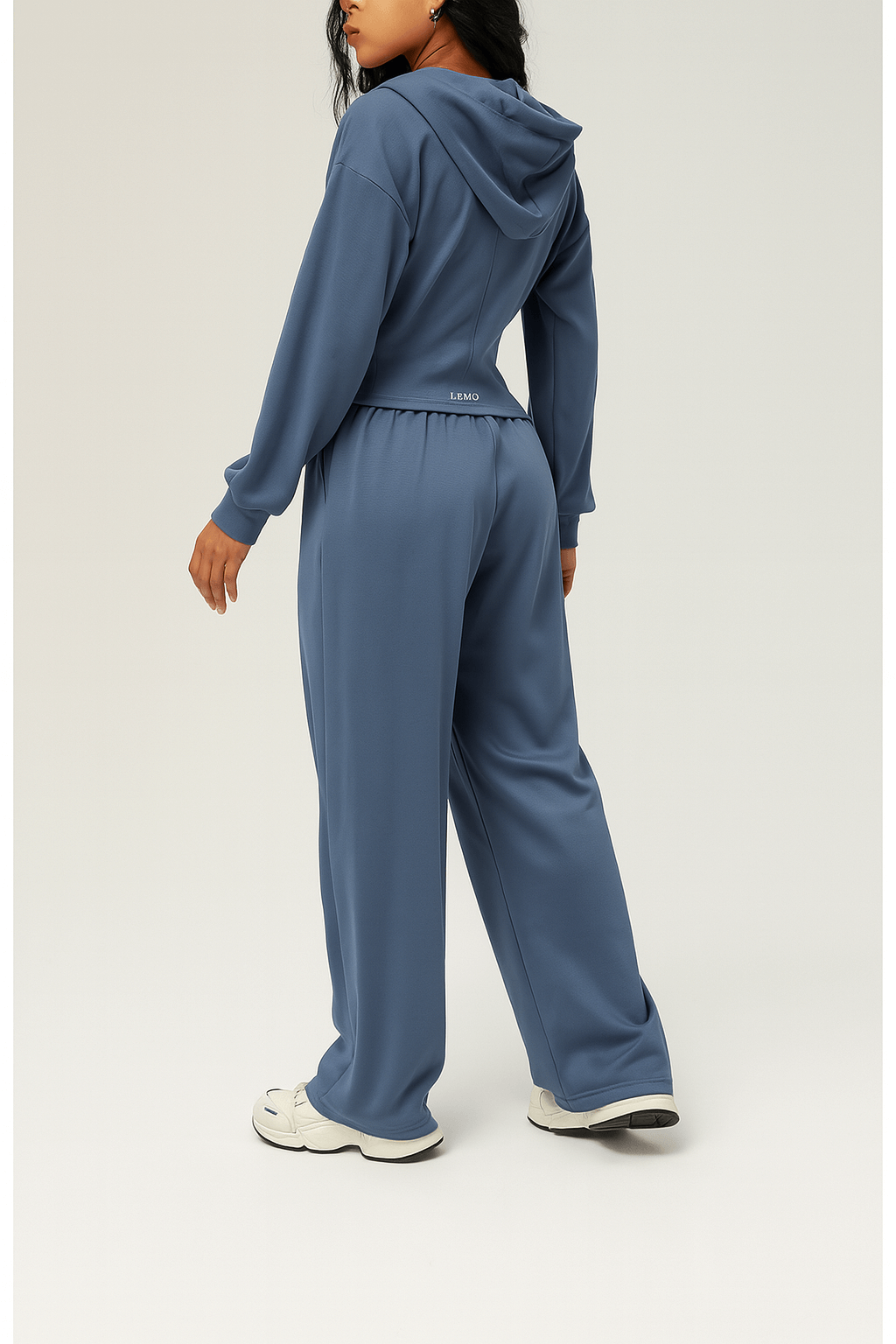 Crafted from smooth, breathable fabric in a striking sky blue hue, it’s the perfect outfit for running errands, travel days, or lounging in style. Bright, bold, and beautifully made — this is your new favorite off-duty look.